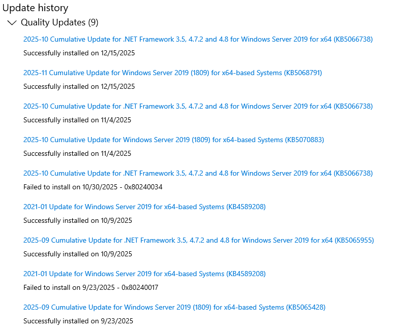 Aquest apartat és sobre el registre d’actualitzacions realitzades sobre el Sistema operatiu i programari.