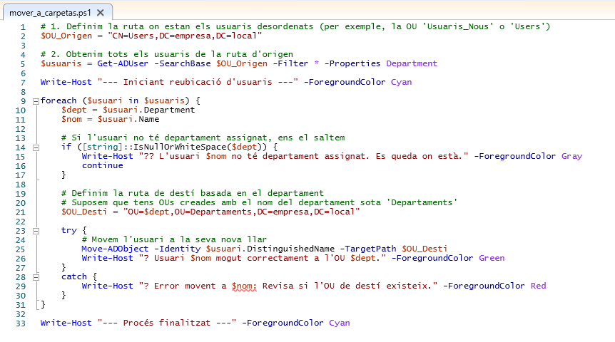 Finalment, l’últim script que utilitzarem serà per moure els usuaris que nosaltres volem a les carpetes que desitgem que estiguin.