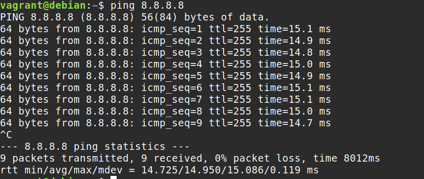 Aquesta altra prova serà per veure com la màquina virtual fa “ping” al DNS de Google