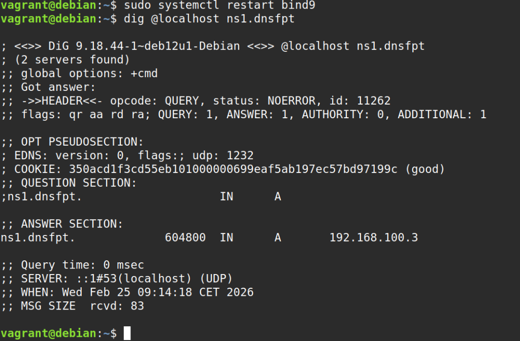 I per fer una comprovació de què funciona reiniciem el servei i provem que respongui cap al seu nom.